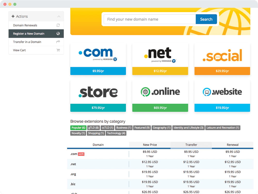 تمام ابزارهایی که برای فروش دامنه نیاز دارید، از جمله پیشنهادات دامنه پیشرفته و یک پورتال مدیریت خدمات خودکار برای مشتریان.